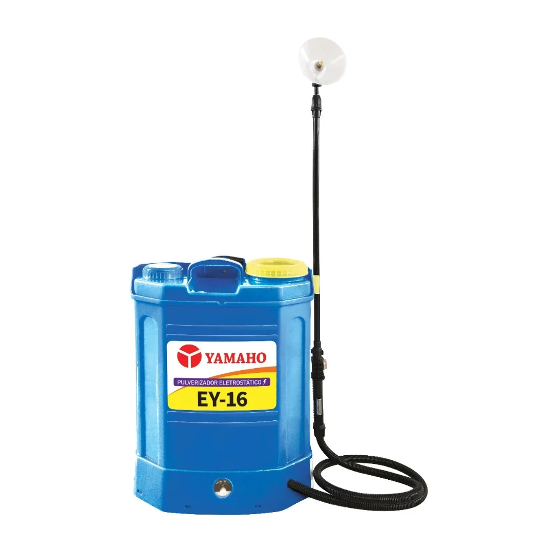 O Pulverizador Costal Eletrostático Yamaho EY-16 é um produto desenvolvido com alta tecnologia que tem como objetivos otimizar a aplicação de defensivos, reduzir custos de operação e aumentar a eficiência da aplicação devido a maior deposição de gotas.